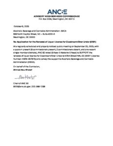 ANC 6E Resolution Re Renewal of Liquor License for Cloakroom-Over Under (6E01)